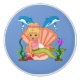 De här är söta lådknappar för ett litet flickrum, med en blond sjöjungfru klädd i rosa och med en rosa buk i hennes hår. Hon är sitta i en snäcka av laxens färgad, med hummer, lila fisk och två blå delfiner för företag. Bilden placeras på en havsblå bakgrund. Se till att se motsvarande täcke för duntäcken, kuddar och andra caseser i vår butik. *Tack vare Real Deal Clipart för det klipp som används för att skapa den här designen.