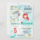 Unikt designad Sjöjungfru Haj inbjudan. Perfekt för din sjöjungfru och haj fest!