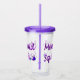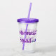Sjöjungfru fyrkant med lila och blå sjöjungfru svan på en klar akryltumör med motsvarande lock och halm