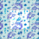 Vackert, Konstig, Lila och turkos Fairy Ocean Creature, den här Sjöjungfrun är Swimmingm och ser ut att leka, omgiven av Starfish, snäckors, sjögräs, Fishes, och hålla en liten sjöhäst på henne. Alla inslag samlas för att bilda ett sömlöst Mönster. Vector Illustration Copyright BluedarkArt.