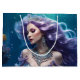 En vacker sjöjungfru med kaskadande lila hår i havet. Anpassa med namn.