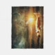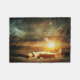 Sjöjungfrun sover på sanden under ett halvmåne måne och stjärnor. Hues av guld, grönt, blått och gult. Mycket elegant.