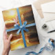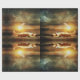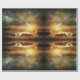 Sjöjungfrun sover på sanden under ett halvmåne måne och stjärnor. Hues av guld, grönt, blått och gult. Mycket elegant.