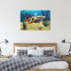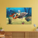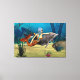 Två vänner, söt sjöjungfru som simmar med delfin i ett blått fantasi-hav