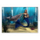 3D digital återgivning av en söt sjöjungfru och delfin på blå fantasybakgrund över havet