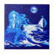Sjöjungfru och sjöman, månbelyst natt kakelplatta