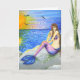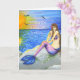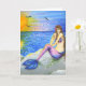 En vacker Sjöjungfru sitta på en strandstandard, 5" x 7" hälsningskort.