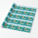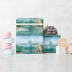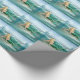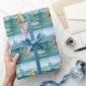 Sjöjungfru på kust med vinkar Aqua och fiskmåsar Presentpapper