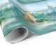 I denna fanciful design sitter en sjöjungfru på en sandig strand, som aquavågar rullar på kusten. För de, som älskar sjöjungfruar och fantasikonst, är detta ett färgrikt, och älskvärt avbilda.