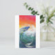 En sjöjungfru med blått hår rider på en blågrön våg under en rik gul och rosa himmel. Hennes långa fjällande svans sveper under vattnet och ändrar färg från grön till blå allt eftersom ljuset och skuggorna varierar.