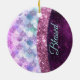 Sjöjungfru rosa silver faux glitter monogram julgransprydnad keramik