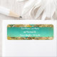 Sjöjungfru Scale Cascading Guld Glitter & Teal Gla Returadress Etikett