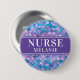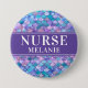 Rosa, Lila och Sjöjungfru vid blå Glitter Skalar Mönster Nurse Namn Button Badge - Anpassa knappmärkemallarna med ditt namn och yrke.