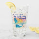 några humor med den här glastumlaren med en sjöjungfru med vattenfärg på stranden, som njuter av solnedgången och en tropisk dryck med texten "Naturligtvis dricker jag som en fisk, jag är en sjöjungfru" i marinblått penseldrag. Perfekt för teman "Under havet". Art av KL Lagrar.