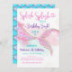 Denna förtjusande inbjudan innehåller en färgfull sjöjungfru svan med faux guld glitter, förskönelse.