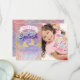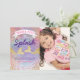 Under havet födelsedag tack kort med ett foto av ditt barn, en färgrik pastell sjöjungfru kammussla mönster bakgrund, glittrande guld och rosa glitter, sjögräs, två guld glittrande sjöjungfru svansar, och en söt barnkalas tack mall som är lätt att anpassa.