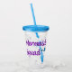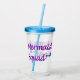 Sjöjungfru fyrkant med blå sjöjungfru svan på en akryltumör med motsvarande lock och halm
