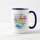Det vita och gråvita kaffet mugg har en sjöjungfru med vattenfärg på stranden och njuter av solnedgången och en tropisk dryck med en "Jag dricker som en fisk, jag är en sjöjungfru" i marin blåborstpinne. Namn kan vara personlig. Art av KL Lagrar