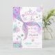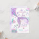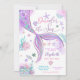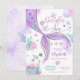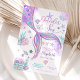 Gör vågor med denna fantasifulla sjöjungfrutematiska inbjudan till ettårsfirande! Med en glänsande sjöjungfrusvans i lila, rosa och turkos omgiven av snigelskal, sjöstjärna, korall och bubblor är denna havsinspirerade design perfekt för en magisk undervattensfest. De pastellfärgade accenterna och lekfulla detaljerna skapar en festlig och förtrollande look som gästerna kommer att älska. Idealiskt för flickors ettårsdag, denna anpassningsbara inbjudan sätter tonen för en oförglömlig fest.