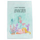 Grattis på födelsedagen presentsäck med en söt illustration av vattenfärg. 2 sjöjungfruar som simmar under havet mellan floran. En maneter från lycklig flyter också med. Mörkare och härlig illustration.