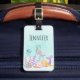 En bagagetagg med en söt illustration av vattenfärgen. 2 sjöjungfruar som simmar under havet mellan floran. En maneter från lycklig flyter också med. Mörkare och härlig illustration.