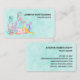 Affärskort med en söt illustration av vattenfärg. 2 sjöjungfruar som simmar under havet mellan floran. En maneter från lycklig flyter också med. Mörkare och härlig illustration.