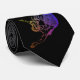 En hand plockade avbildar av en sjöjungfru i regnbågefärger dekorerar en tie som kan ha någon bakgrundsfärg. Denna visningtie har en svart bakgrund som ställer ut färgerna av sjöjungfruarna som applåderar besegrar tien, som though simma in cirklar i ett mörkt hav.