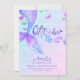 Sjöjungfru 1:a födelsedag med Party med magisk sjöjungfrus svan och sjöjungfru temat typografi. Utformningen har en sjöjungfruar svan och havsbubblor i vattenfärgsskuggor av lila rosa grönt och blått. Lätt att redigera och perfekt för sjöjungfru party, bassäng party, giroprinsessa och under havstemana.