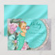 Sjöjungfrubabyshower-inbjudan med söt liten sjöjungfru med diamondiadem och pärlor på en vacker lavendel- och turkos glittrande blomsterbakgrund. Denna vackra sjöjungfrubabyshower-inbjudan kan enkelt anpassas för ditt evenemang genom att helt enkelt lägga till dina uppgifter i den typsnittsstil, färg och formulering du väljer. Detta är en tryckt design utan riktiga juveler, slingor, glitter etc.
