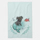 Denna är en vektorillustration av en sjöjungfrugroptjur och henne lite fiskvännen. Sjöjungfruhunden har en stjärnakrona på henne som är head. Det finns en längst ner sjögräskran.
