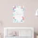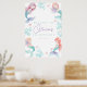Sjöjungfruns babydusch eller födelsedagsfestens välkomstskylt i lila och teal färg.