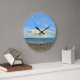 En del av Foto Scope' kustsamling. En ökenstrand med lugn till havs och vita moln mot blå himmel visas på denna akrylväggklocka. Ger ett färg-accent mot en vit vägg eller en mörk i vilket rum som helst.