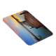 Sjölandskap av trädocka i färgat solnedgång magnet