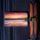 Sjölandskap och pier vid solnedgången, CA Bagagebricka