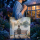 Denna lugna konstnärliga verk fångar en tyst moment av ensamhet och eftertanke när en ung kvinna stillsamt sitter på en träbänk och blickar ut över en lugn sjö badad i det gyllene solljus som uppstår vid solnedgång. Omgiven av frodiga träd och blommande vildblommor frammanar scenen en lantlig, idyllisk charm, som blandar mjuka akvarellstrukturer med mjuk belysning. Varma nyanser av bärnsten och pastellgrönt kompletterar den drömlika glöden från den nedgående solen, medan ömtåliga skuggor sträcker sig över vattenytan. Kompositionen inbjuder betraktaren till en värld av tyst kontemplation, insvept i naturens famn. AI-genererad konst.