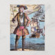 Perfekt för "Tala som en sjörövare-dagen" den 19 september! Detta vykort har vintagekonst med den fruktade sjörövaren kapten Svarta Bart och en flotta av skepp bakom honom i en vik.