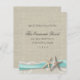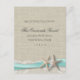 Lantlig strand bröllopsinbjudan med det romantiska utseendet av säckväv och spets, accentuerad med sjöstjärna och aqua band design.