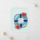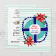 Det här julkortet med ny adress har en nautisk design med en turkos och marinblå livering dekorerad med röda julstjärnor. Vita och akvatona ränder ger en strandliknande, kustnära känsla som antyder en flytt söderut, kanske till Floridas stränder. Exempeltexten på framsidan av kortet lyder: "God jul från vårt Nya hem" och kan ändras till valfri text via personaliseringsmallen. Texten på baksidan av kortet kan också enkelt ändras. Detta adressändringskort ingår i vår samling "Holiday Moving Announcements", som även innehåller ett julkort, två storlekar av vikta kort med kuvert, ett vykort och en returadressetikett i samma design.