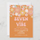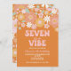 Groovy Seven är en inbjudan till Vibe retro blommigt 7:e på födelsedagen med 70 stil blommor och boho typsnitt och färg.