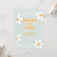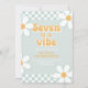 Sju är en stämning Groovy Girl Retroinspirerad 7-årsdagskort med 70-tals typsnitt och prästkragar och rutmönster.