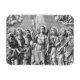 I detta gravitationsfält av Hieronymus [Jerome] Wierx från c. 1600 ligger fokus på Archangels. + Sju Archangels, deras namn inskriven i haloerna, återges med sina attribut. Enligt lämnat till höger är Archangels följande: St. Raphael ("Gud heals") bär en apotekares burk och håller hand om Tobias, som transporterar fisk. Med en salva gjord av fisktarmar läkte St Raphael Tobias far med blindhet och hans framtida fru från besittning av en demon. Uriel (eller Ariel; "Gud är mitt ljus") har ett svärd. Han kan ha utvisat Adam och Kväll från Edens trädgård efter Fallen. En låda (inte synlig här) brinner vid fötterna. Sankt Gabriel ("Guds styrka") framställs vanligen med en liljespruta. Men här bär han en lanterna som sätter ljuset från en spegel av jasper. Mönstret symboliserar Guds Ord och, spegel i jasper - ett mineral med slutsatser som ändå tar på sig ett reflekterande skal när det poleras - symboliserar vår bristfälliga förståelse för Guds natur. I mitten bär en lång, pansarklädd St. Michael ("Vem är som Gud?") en slagnorm och handflatan av seger. Han krossar Lucifer under täckmantel av en drake under foten. Sealtiel ("bön för gud"), här med ögon upphöjt, viker händer i bön framför bröstet. Jehudiel ("Guds rättvisa") bär ett krona och ett gissel (den himmelska motsvarigheten till morot och piska). Och slutligen håller Barachiel ("Guds välsignelse") ut ett veck av sin mantel fylld med blommor för att strömma eller dosera. + Engreringen inspirerades av två bibliska passager - Apoc. 1:4 och Psalm 137:1-2 - som visas på latin under bilden på den ursprungliga utskriften (syns inte i den här detaljen). + Joint Feast of SS. Michael, Gabriel och Raphael: 29 september + Image Kredit (M 034): Detail of an antique Flemish Northern Renaissance engrave of St. Michael and Archangels (The Seven Archangels), by Hieronymus [Jerome] Wierx, ursprungligen publicerad med privilegium av Piermans, Antwerp, Belgien, c. 1600, The Metropolitan Museum of Art, The Elisha Whittelsey Collection, The Elisha Whittelsey Fund, 1951, 51.501.6402. Kreativets kommandon CC0 1.0 Universal Public Domain Dedication.