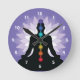 Sju Chakras Yoga Position Wall Clock med anpassadets bakgrund färg.