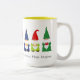 Sju Cute Julgryn på vita Mugg. Text kan vara personlig. Gnomes tar med kärlek, bra förmögenhet och visdom! God Jul!