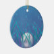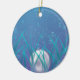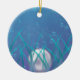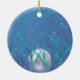 En digital illustration under vatten som visar strålen från solljus som strömmar ner genom vatten fullt av bubblor i blå grönt. Gömt i ogräs mellan lavender och grönt på havet är en enda pärla - en solitär havsskatt.