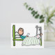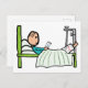 Sjukhusbäddens design visar en pinfigur som läser ett kort medan han ligger i sängen. Har ett brutet ben i en signerad gips som höjs med specialutrustning. Patienten har bekväma kuddar och en avslappnad, uppgiven attityd till sjukhusvistelsen. Snart frisk igen!