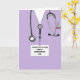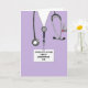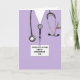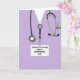 Sjuksköterskekort för sjuksköterskor med personlig, studenten, med lavender-sjukhusskrubbar och den schweiziska armén knivar. Redigera text som ska läggas till namn.