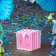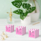 Kreativa sjuksköterska fester presenter med rosa sjukhusuniformer och ett stetoskop.