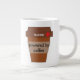 Det här kaffet mugg visningar ett brunt kaffe kopp med texten "Sjuksköterska - med kaffekraft". Det finns en röd kor bredvid "sjuksköterska".