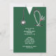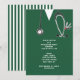 Kreativa sjuksköterskeexamen-fest inbjudningar eller meddelanden med gröna sjukhus-uniformer, rolig schweizisk armékniv och stetoskop konst.