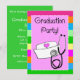 Sjuksköterska Utexamineringsfest Inbjudningar, ljust randigt mönster med realistiskt svart stetoskop i 3D-stil och sjuksköterskemössa. Baksidan av inbjudan i matchande färger och är helt anpassningsbar.